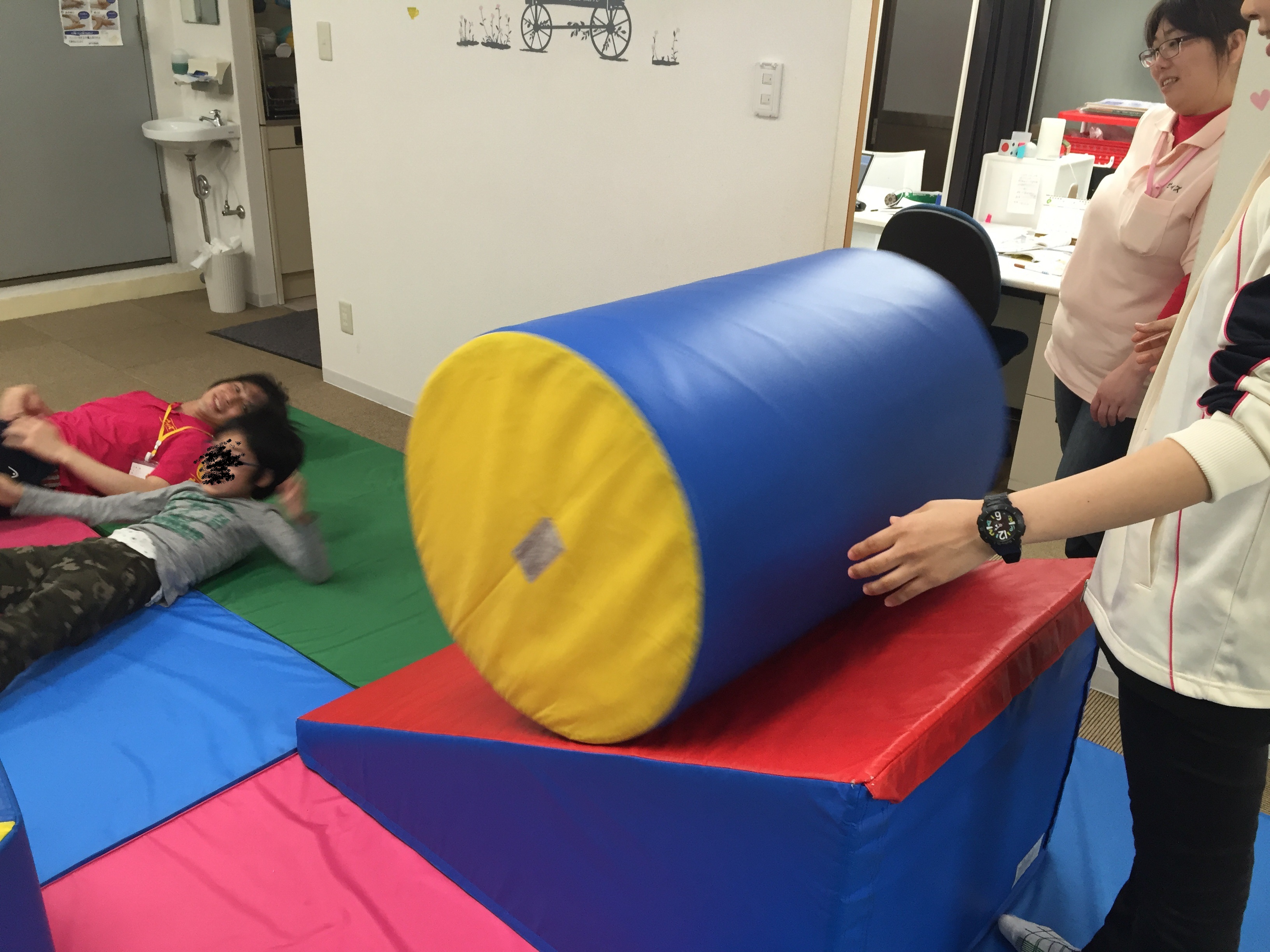 円柱マットをゴロゴロ転がして、それをよけるというシンプルなゲームです。