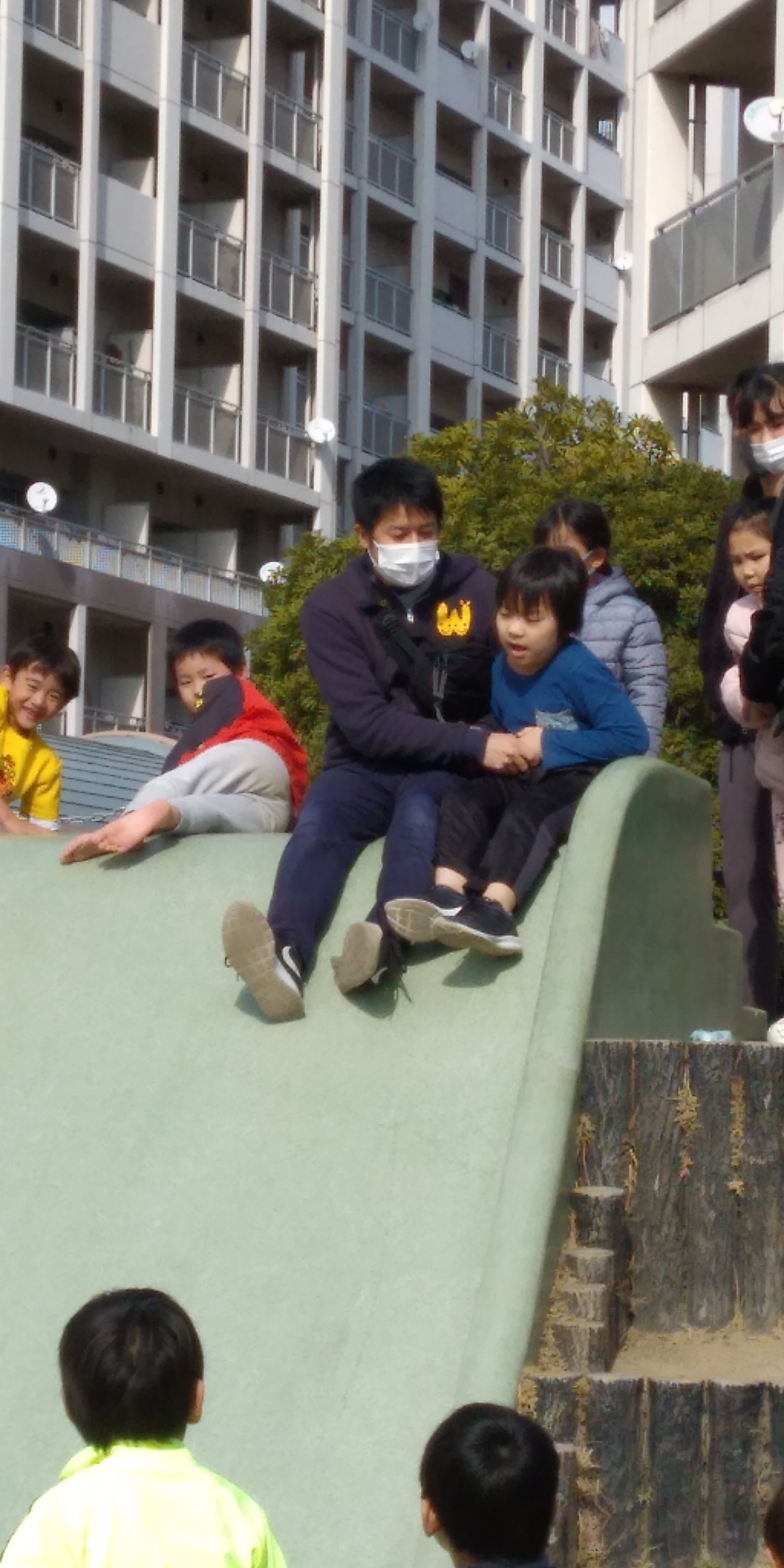 下の写真の児童さんは、滑り台はやらんと言いながらも何回も滑っていました。