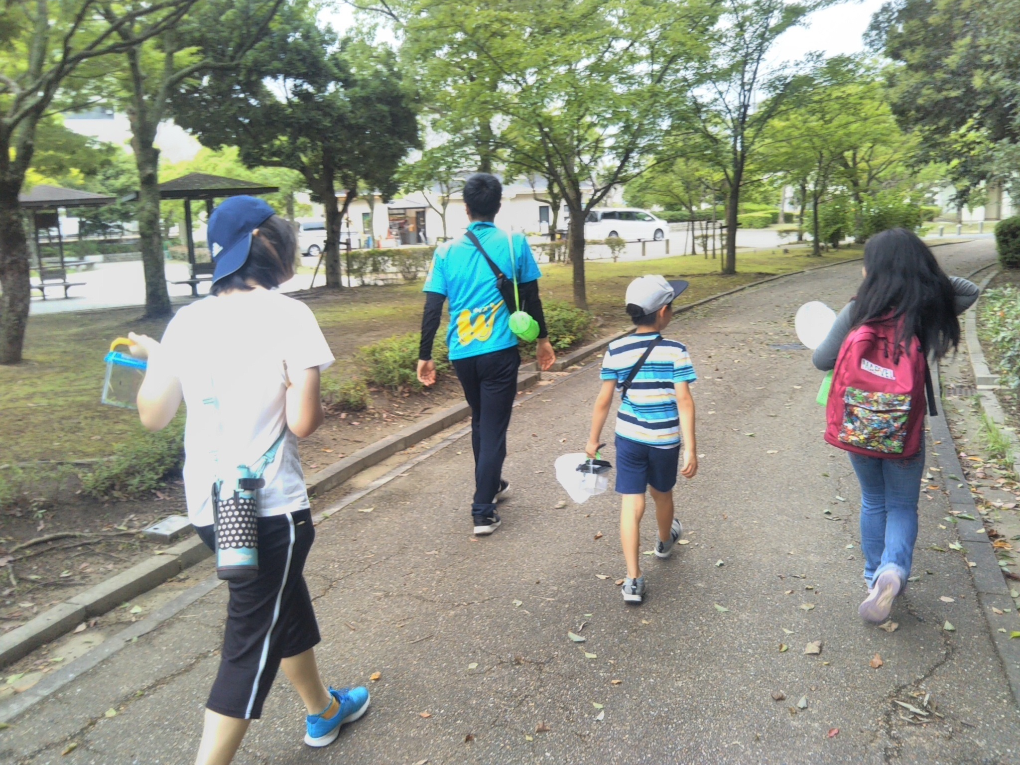 彼にリーダーを担当してもらい、隊列を組んで、公園の中を進んでいきます。
