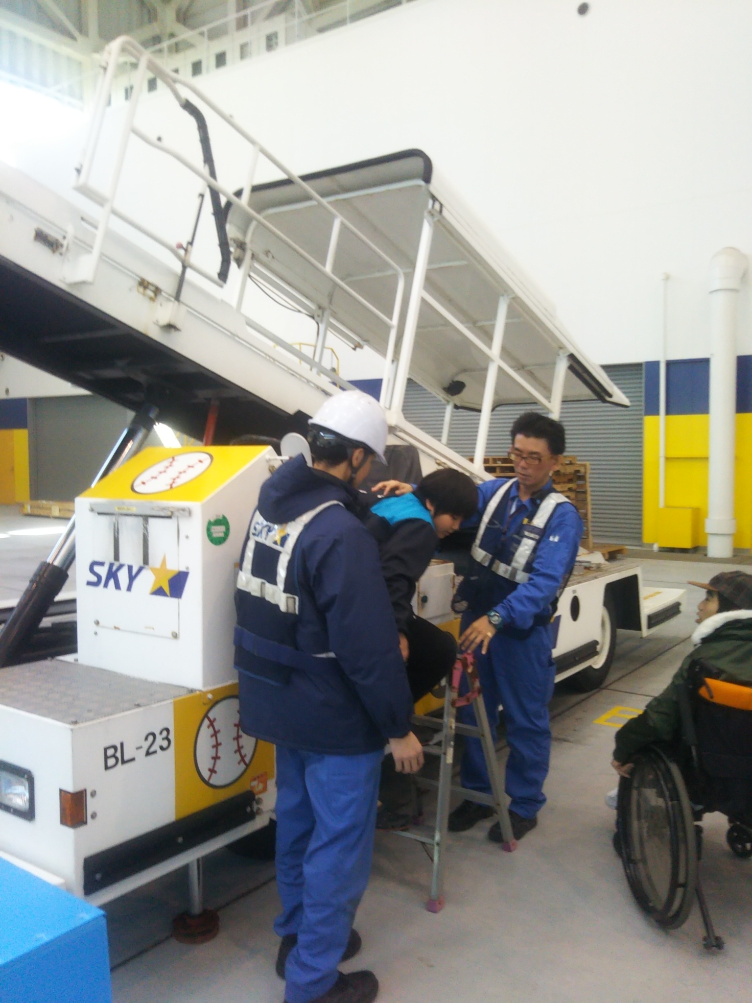 普段は見られないトーイングトラクター、飛行機に荷物の積み降ろしを行うベルトローダー、飛行機をけん引するトーイングカー、パッセンジャーステップ車など普段は近くで見られないものを展示していただき、実際に動くところや乗車などさせていただきましたし、一つひとつの車両の役割とかも教えていただき飛行機が飛ぶまで、とても多数の方の力が必要であることも理解できとても勉強になりました。