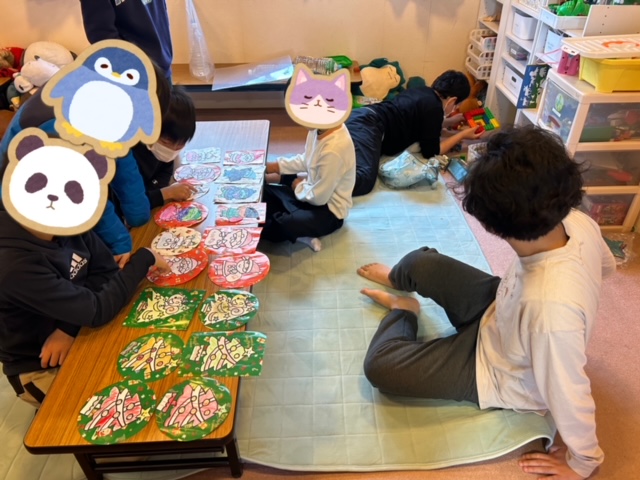 みんなでサンタクロースのぬりえをしたよ。