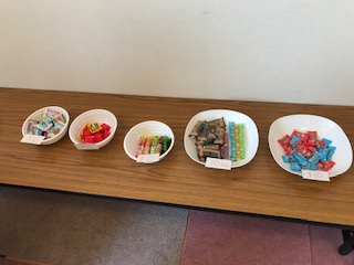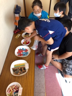 こちらはお菓子屋さんごっこで、お店に並べられた駄菓子たちです!