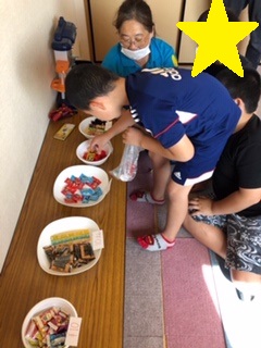 スタッフお手製「お菓子わしづかみボックス」で一生懸命にマイお菓子をゲットします。