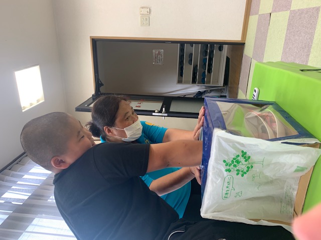 利用者様の保護者の方から大きなさつまいもをいただいたので、