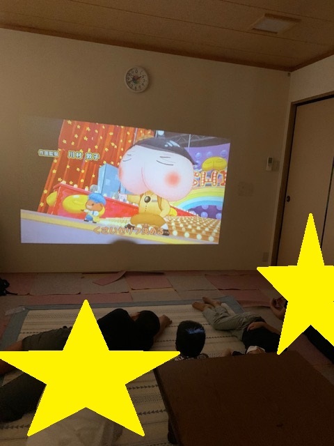 プロジェクターを使って、ウィズで映画館気分を味わいました☺☆