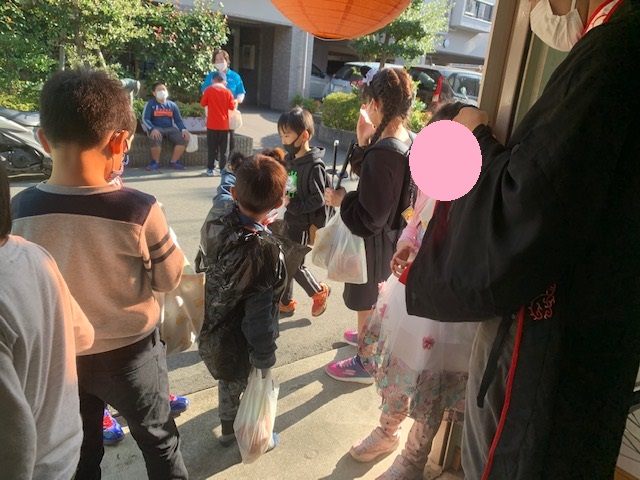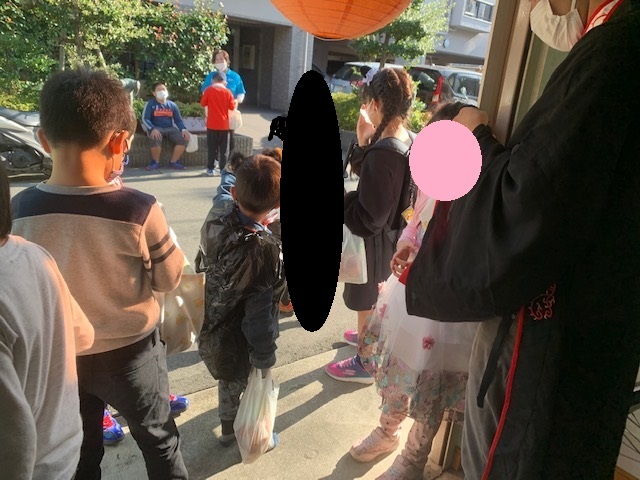 子どもたちはお菓子をもらえるスポットまで歩いていきました✌