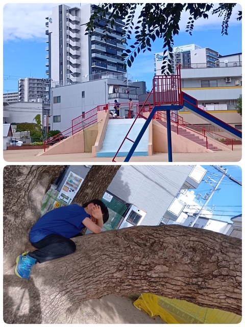 登っていく遊具の浅い階段でみんなすってんころりんしてしまい