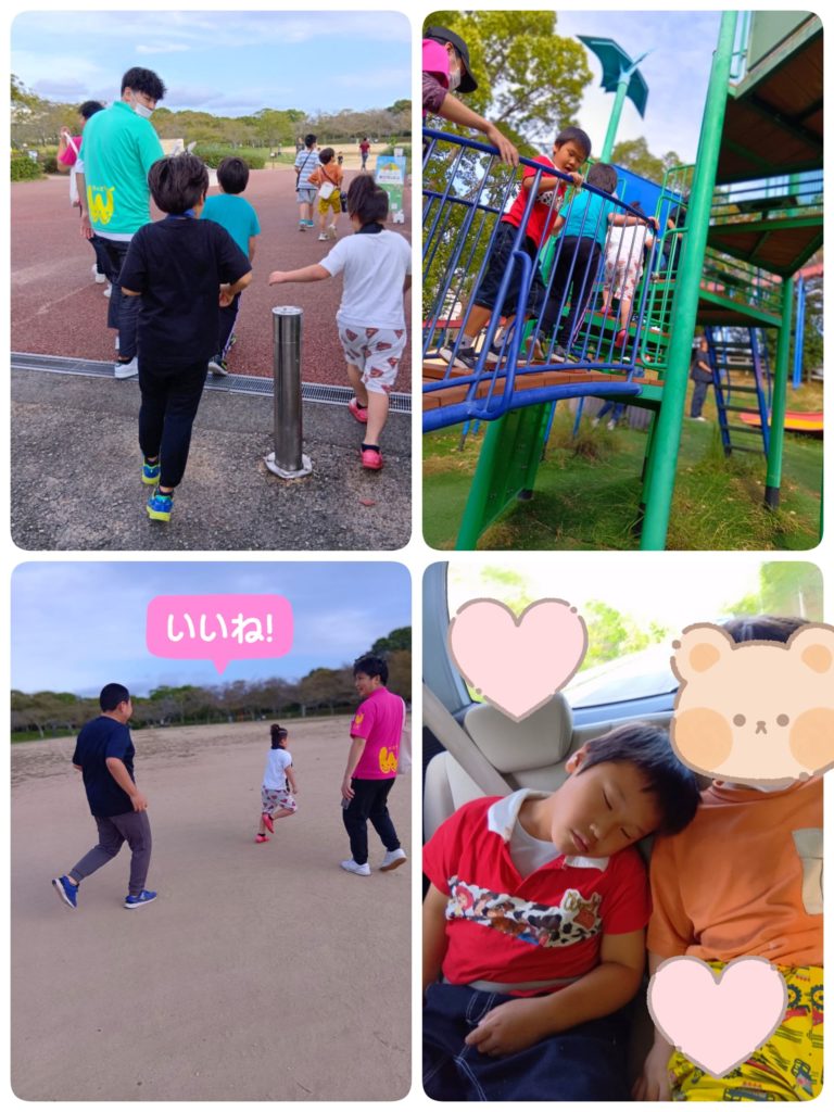 行きの車でぐっすり眠って体力チャージをしたり、遊具が見えてきたら