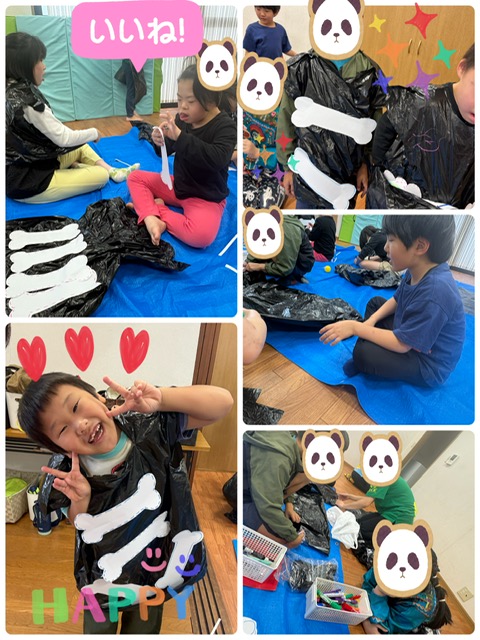 骨をぺったんと貼ったりマントにかぼちゃの絵を描いたり