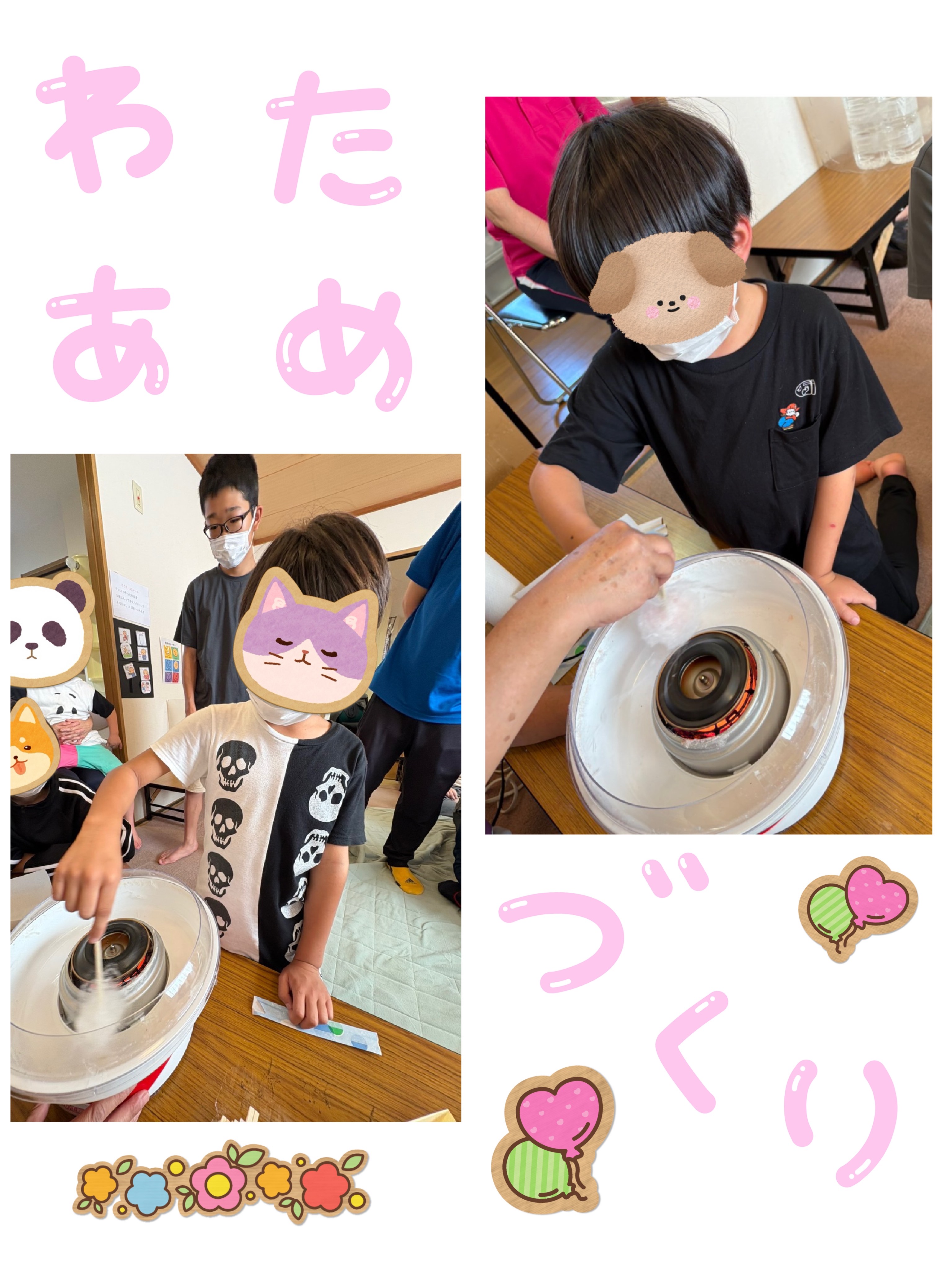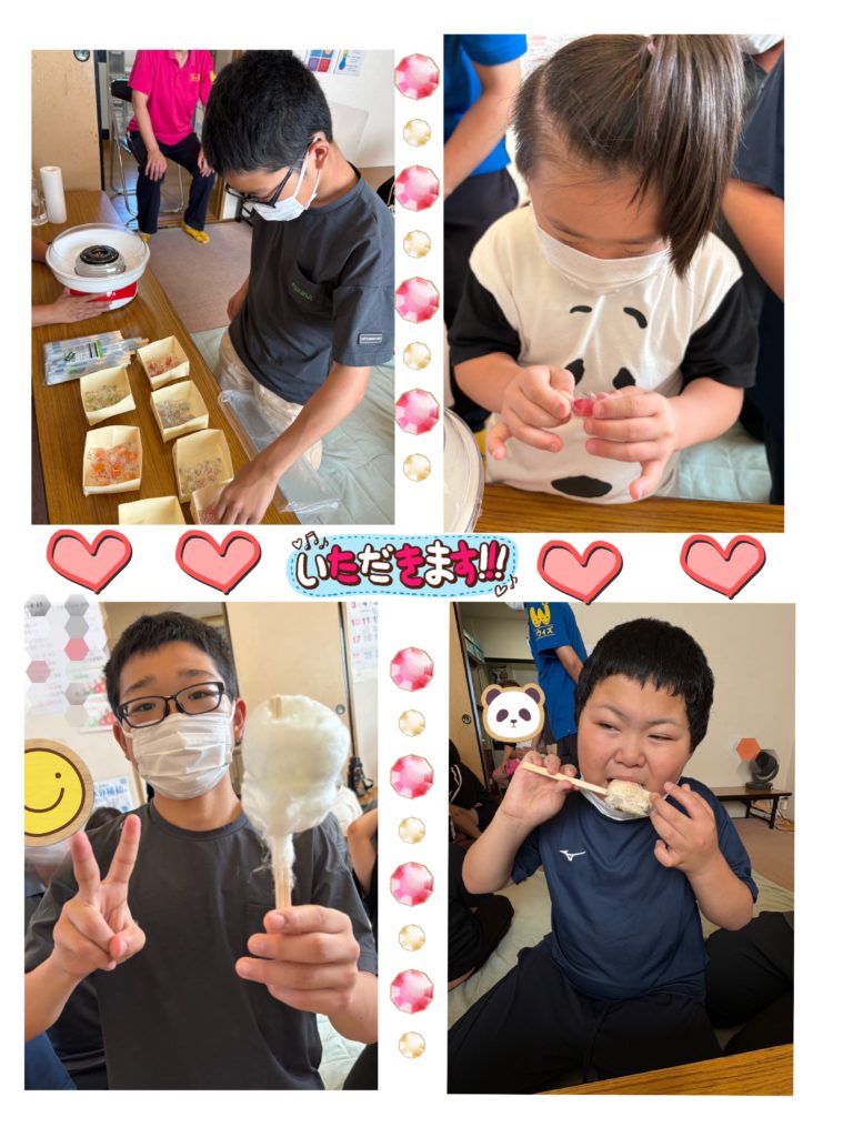 みんな上手にクルクル回して、自分が食べるわたあめを作りました。
