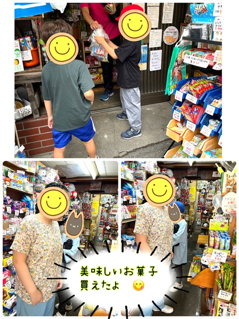みんなで駄菓子屋さんに行き、買ったお菓子を持って