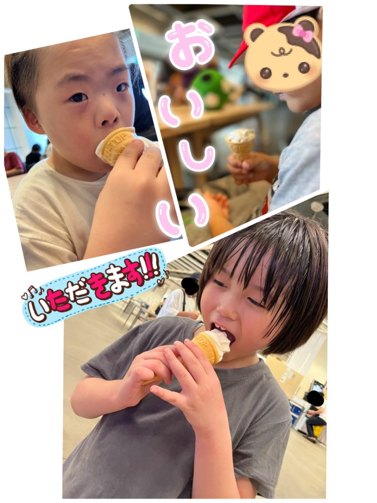 ボールも購入し、最後にみんなでソフトクリームを食べました。